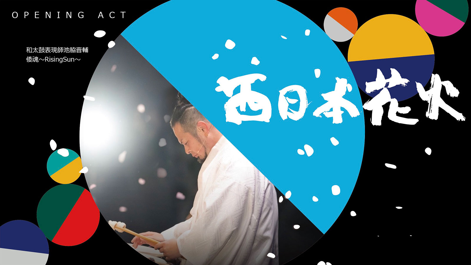 西日本花火による音の演出と和太鼓表現師池脇晋輔 倭魂〜RisingSun〜による演奏がジャパンモビリティショー福岡2025 のオープニングを飾ります。